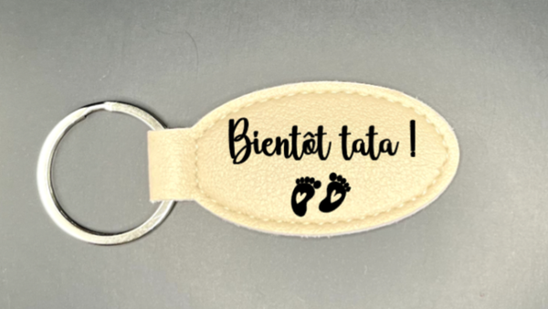 Porte clés, couleur beige.Textes au choix parmis 4 propositions.Les couleurs de votre porte clés, sont celles sur les photos.Taille: 5.5cm